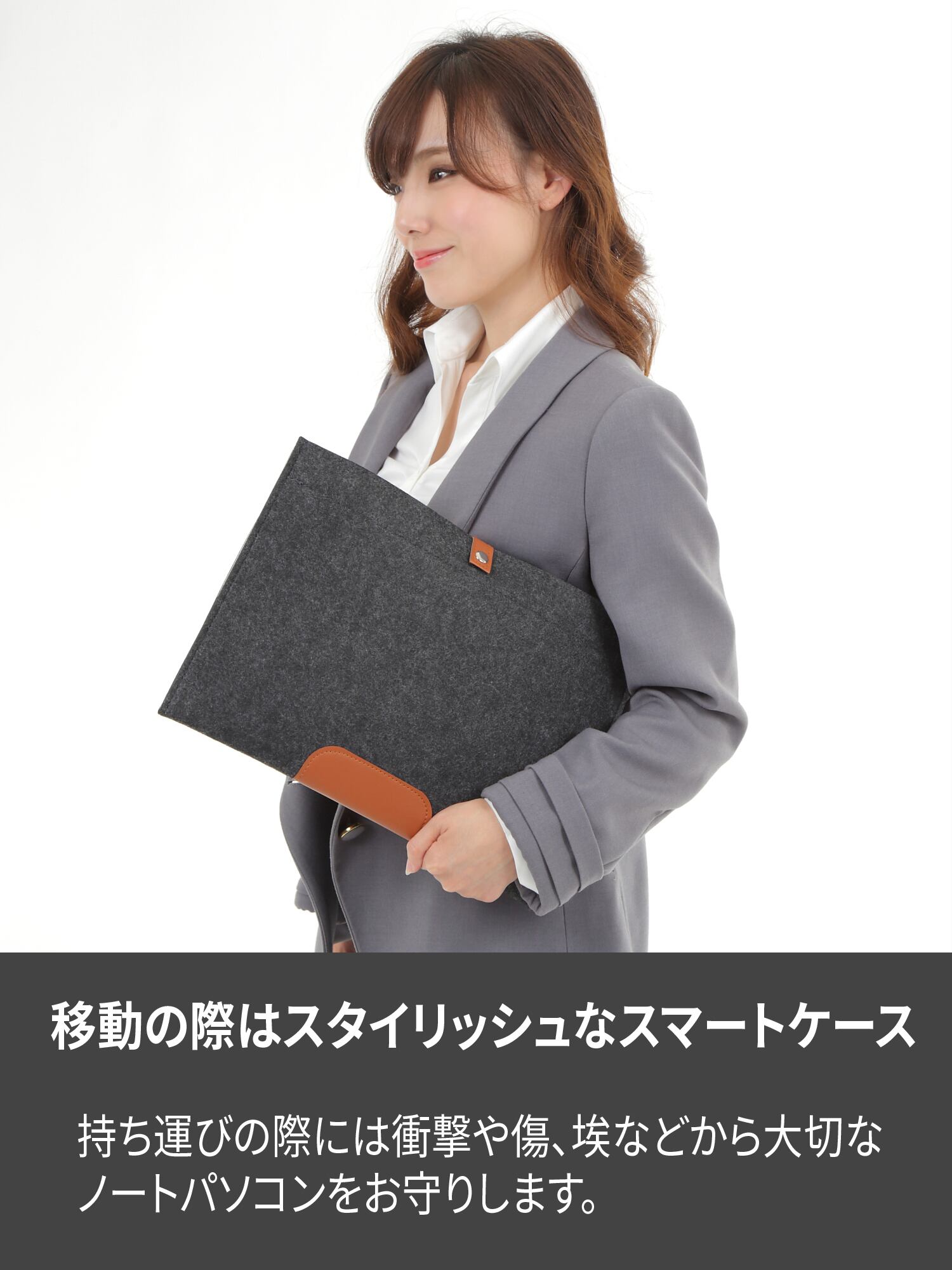 ✅大切なノートパソコンを埃と傷から守り、持ち運びをスタイリッシュに演出します。 (さらに持ち運びの際は手に持った時に滑りにくく落下防止にもなります。)表側は耐久性に優れ、手触りがいいフェルトを使用、内側はソフトなフランネルを使用(毛羽立ちにくい素材です。)、衝撃を吸収し、大切なノートパソコンを守ります。(バックパック等に仕舞って移動する際も、ケースに入れる事で緩衝材の役目をし、バッグの中で他の荷物と干渉して傷が付くのを防ぎます!)インナーケースとしても、そのままパソコンバッグ(パソコンケース)としてもお使いいただけるフェルトタイプのケースです。
