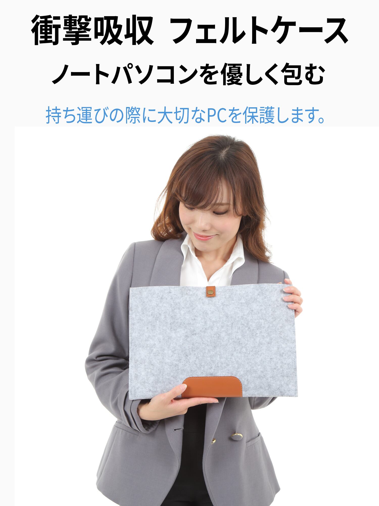 ✅大切なノートパソコンを埃と傷から守り、持ち運びをスタイリッシュに演出します。 (さらに持ち運びの際は手に持った時に滑りにくく落下防止にもなります。)表側は耐久性に優れ、手触りがいいフェルトを使用、内側はソフトなフランネルを使用(毛羽立ちにくい素材です。)、衝撃を吸収し、大切なノートパソコンを守ります。(バックパック等に仕舞って移動する際も、ケースに入れる事で緩衝材の役目をし、バッグの中で他の荷物と干渉して傷が付くのを防ぎます!)インナーケースとしても、そのままパソコンバッグ(パソコンケース)としてもお使いいただけるフェルトタイプのケースです。