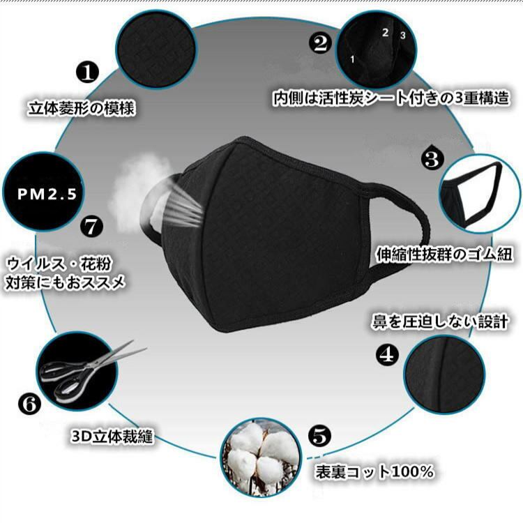 コピー:黒マスク ブラックマスク 布マスク 立体マスク 花粉症 3枚組セット 活性炭マスク 風邪予防 PM2.5