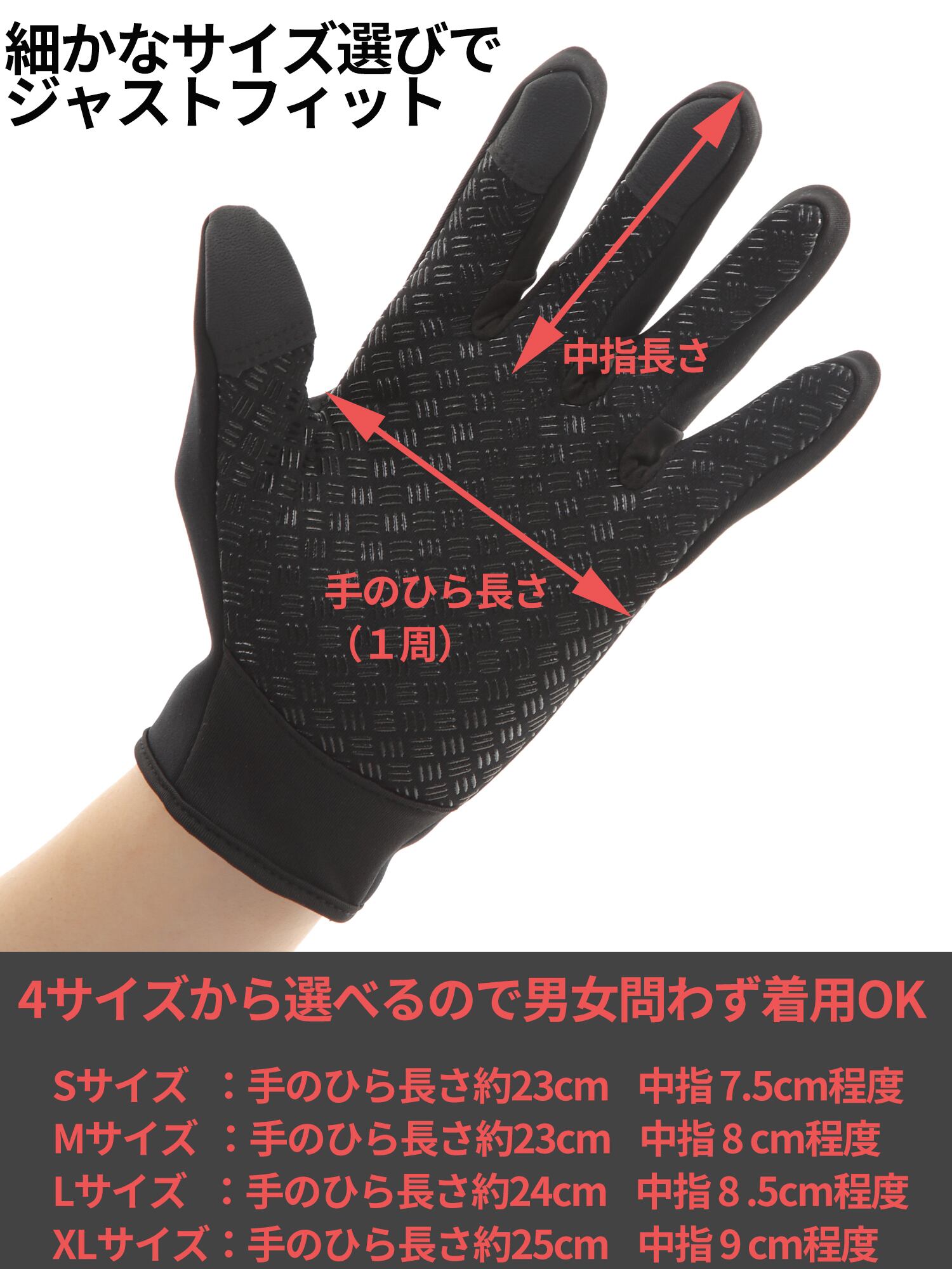 【あなたの合ったサイズに合った4サイズからお選びいただけます】Sサイズ :手の平周囲約23cm 中指サイズ約7.5cm Mサイズ :手の平周囲約23cm 中指サイズ約8cm Lサイズ :?手の平周囲約24cm 中指サイズ約8.5cm XLサイズ :?手の平周囲約25cm 中指サイズ約9cm