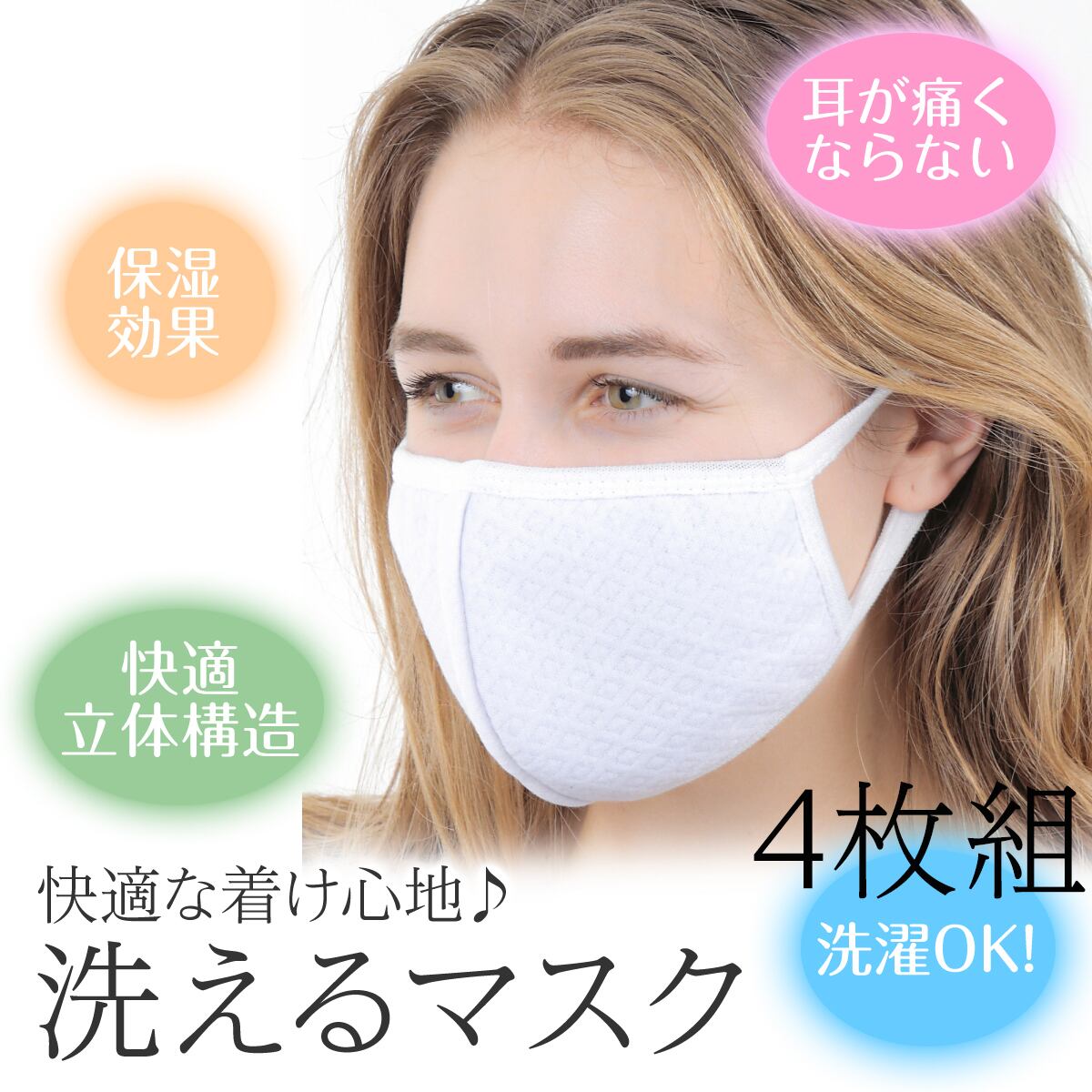 マスク 布マスク 洗えるマスク 立体マスク 花粉症 白 ホワイト 4枚組セット 活性炭入り 風邪予防 PM2.5